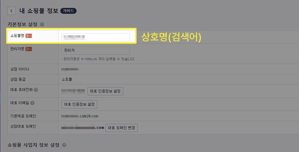 쇼핑몰 이름에는 상호명을 넣어주시고