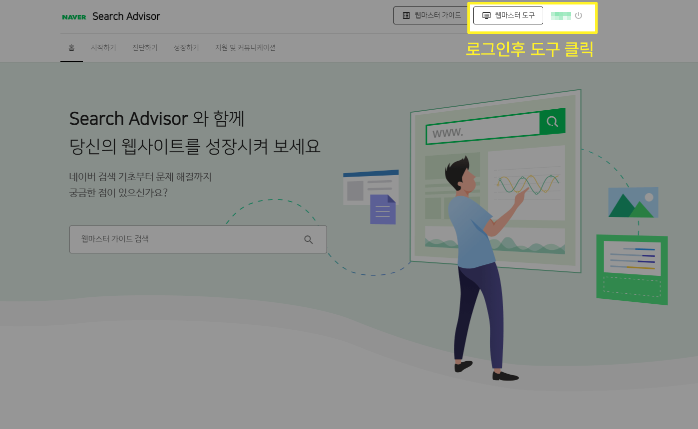 해주신뒤에 웹마스터 도구를 클릭해주세요.