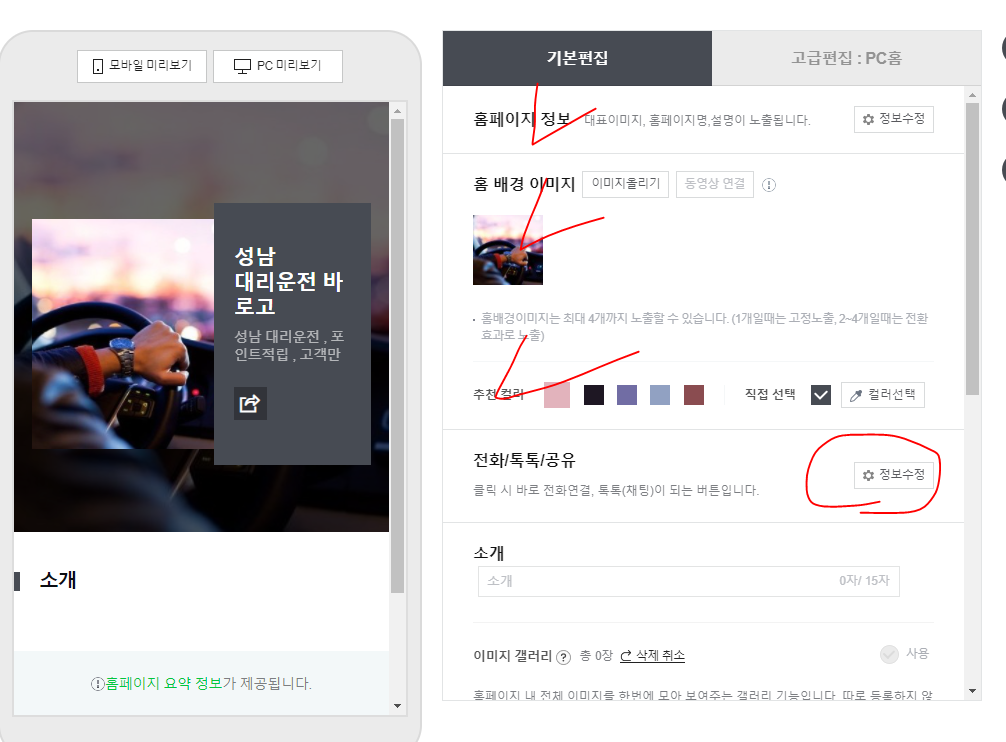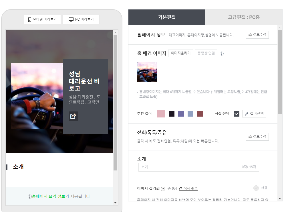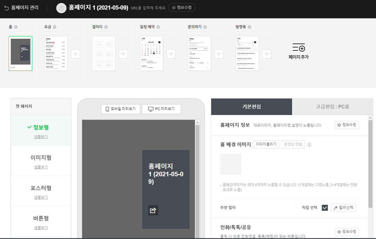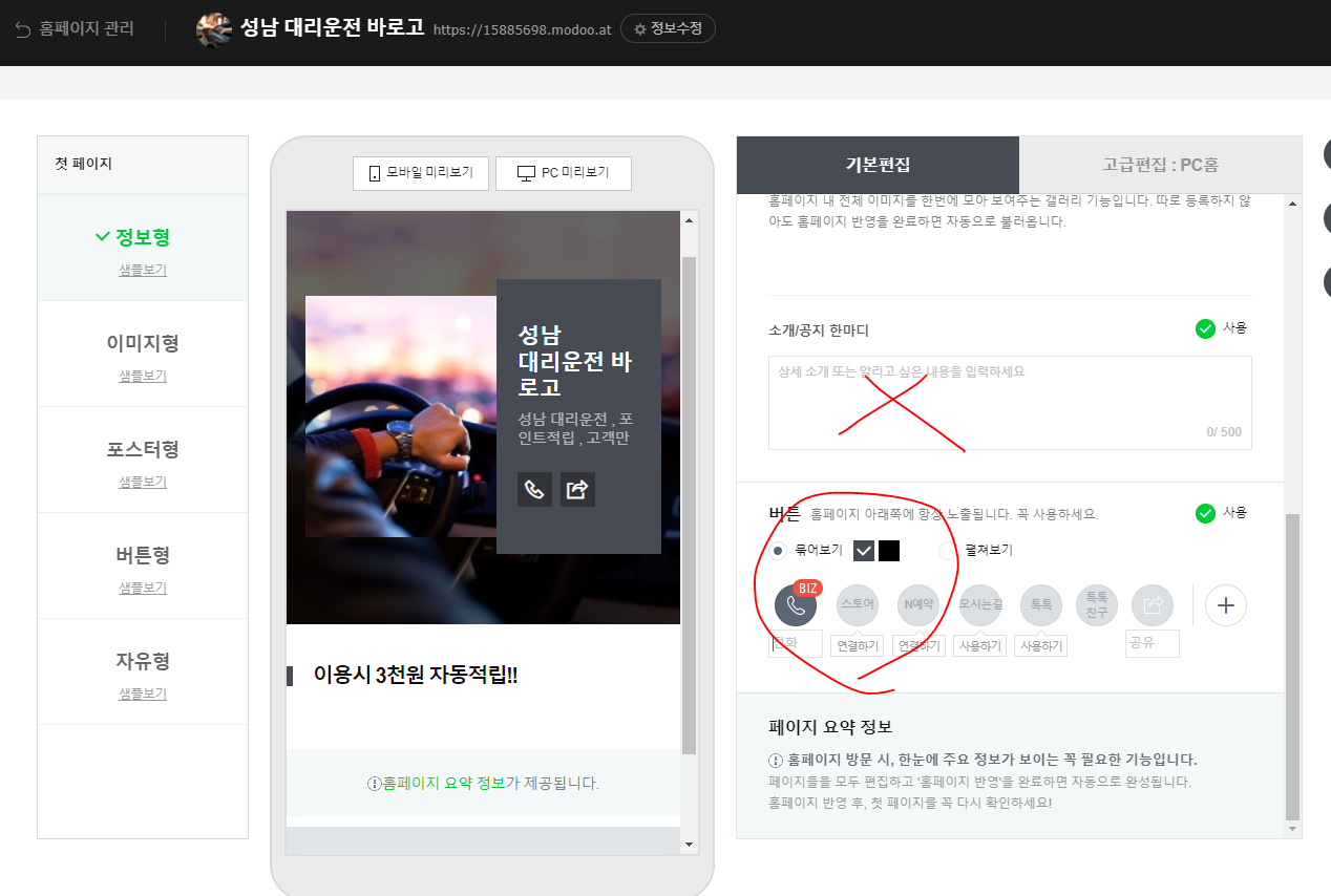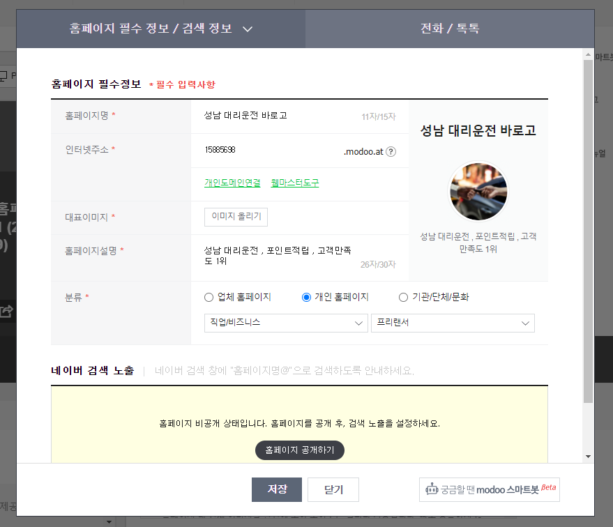 네이버 모두로 무료 홈페이지 제작 해놨어요