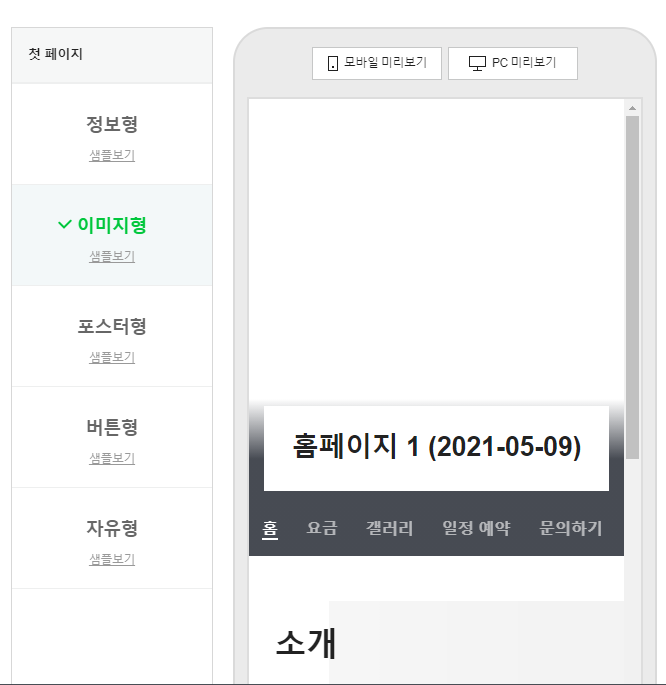 반영 하셨으면 이제 무료 홈페이지 제작은