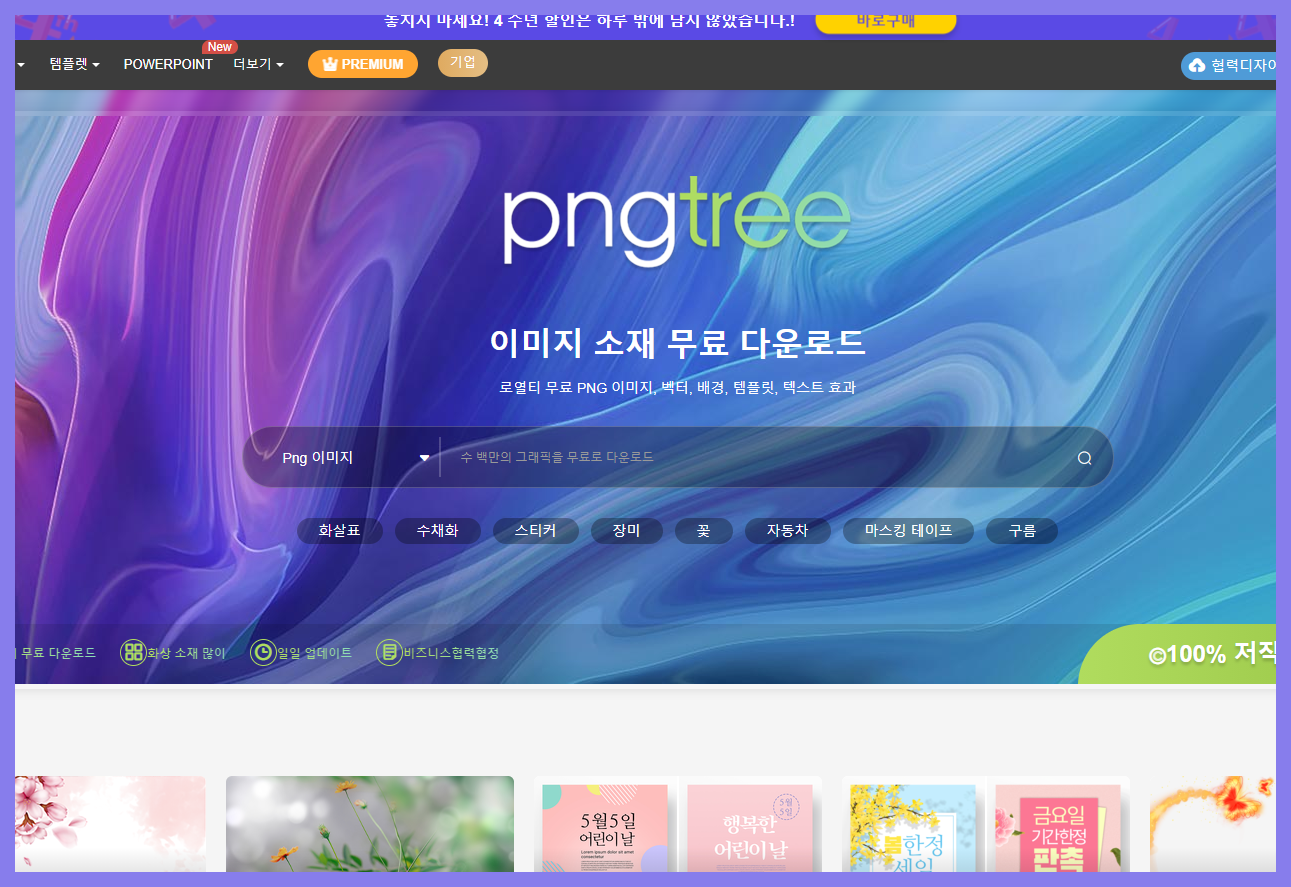 앞전에 설명드린 pngwing 처럼 여기 pngtree 사이트도