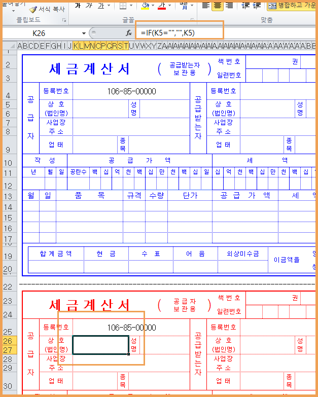 똑같이 자동입력 되게끔 수식을 넣어놨습니다